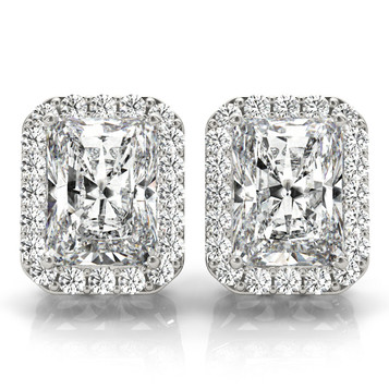 This beautiful Earrings Halo features 40 sparkling Diamonds with approximately .40ct tw and 1ct t.w LabGrown Diamond at the center. Set in 14k White Gold.Available in series. |