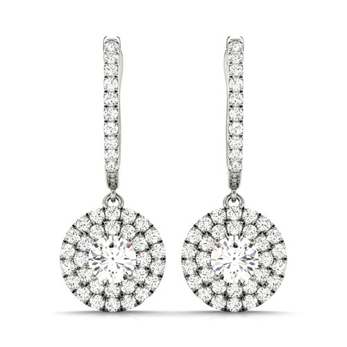 | This fabulous Earrings Halo features 72 sparkling Diamonds with approximately .50ct tw Lab Grown Diamond at the center. Set in 14k White Gold.Available in series. |
